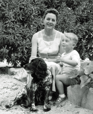 My faithful dog, Lindy and Barbara, my mother in our garden, 1958.
