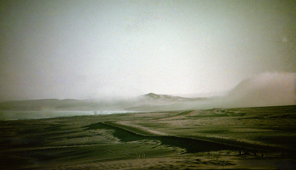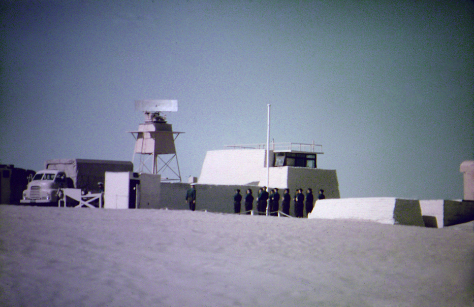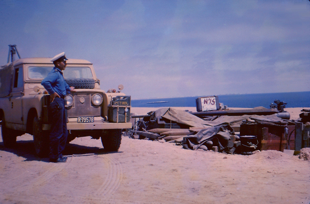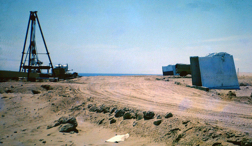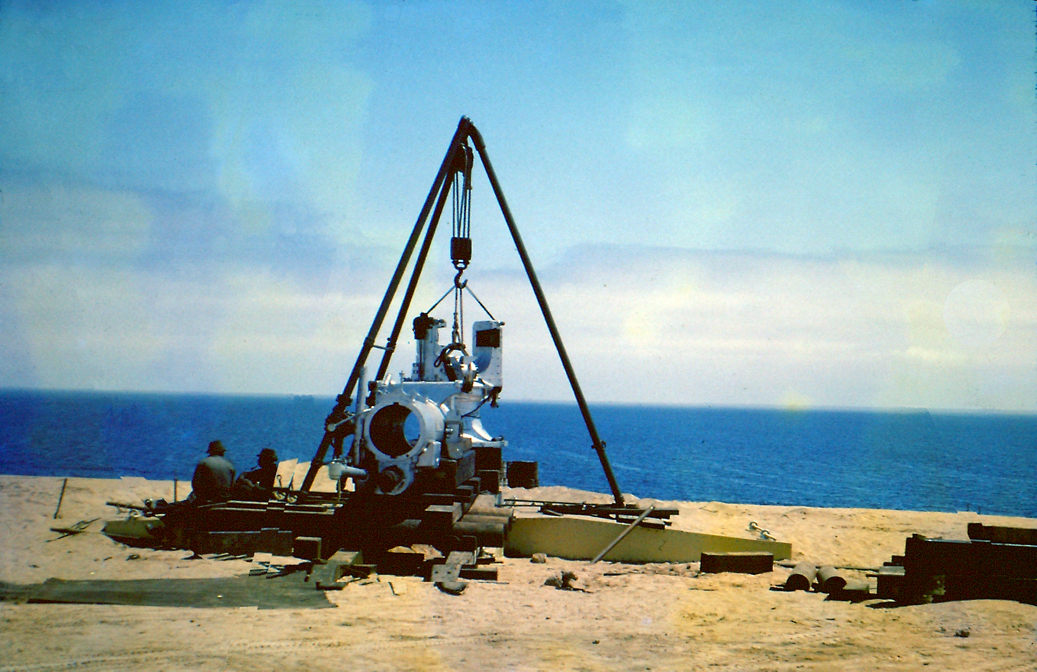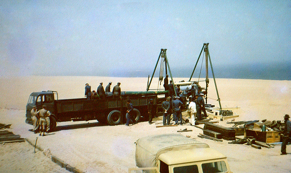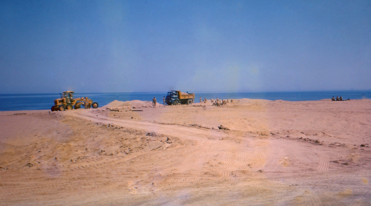 Above LEFT: My father, Lt. Peter Klerck, 1962. Here near or at the construction site of the gun. Above RIGHT: I remember my father saying that before he could build a gun on the sand dunes, they had to build the road to get it there; more difficult.