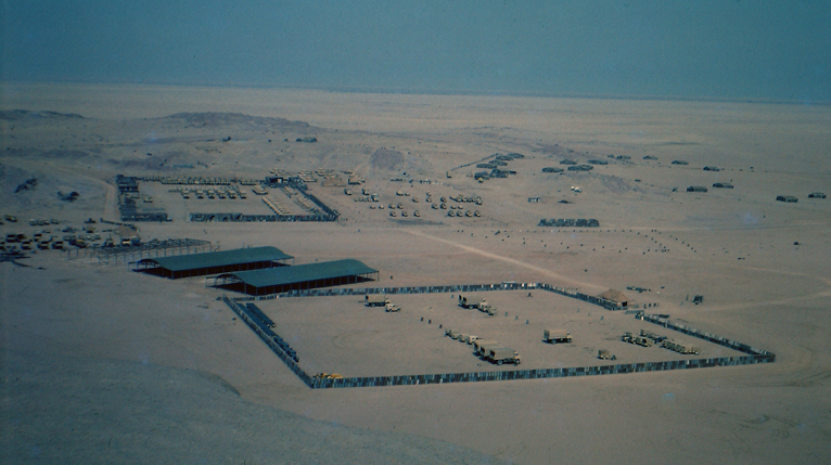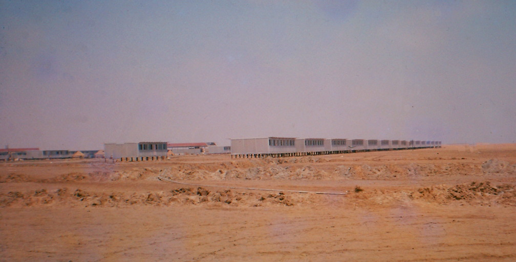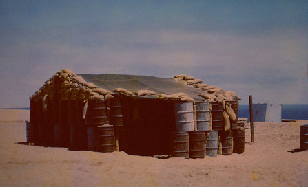 I was just seven years old, and remember staying here with my father at the main camp - I assume in the prefab bungalows above. Have often wondered how long it took to place these 44-gallon drums on top of one another to build that wall.